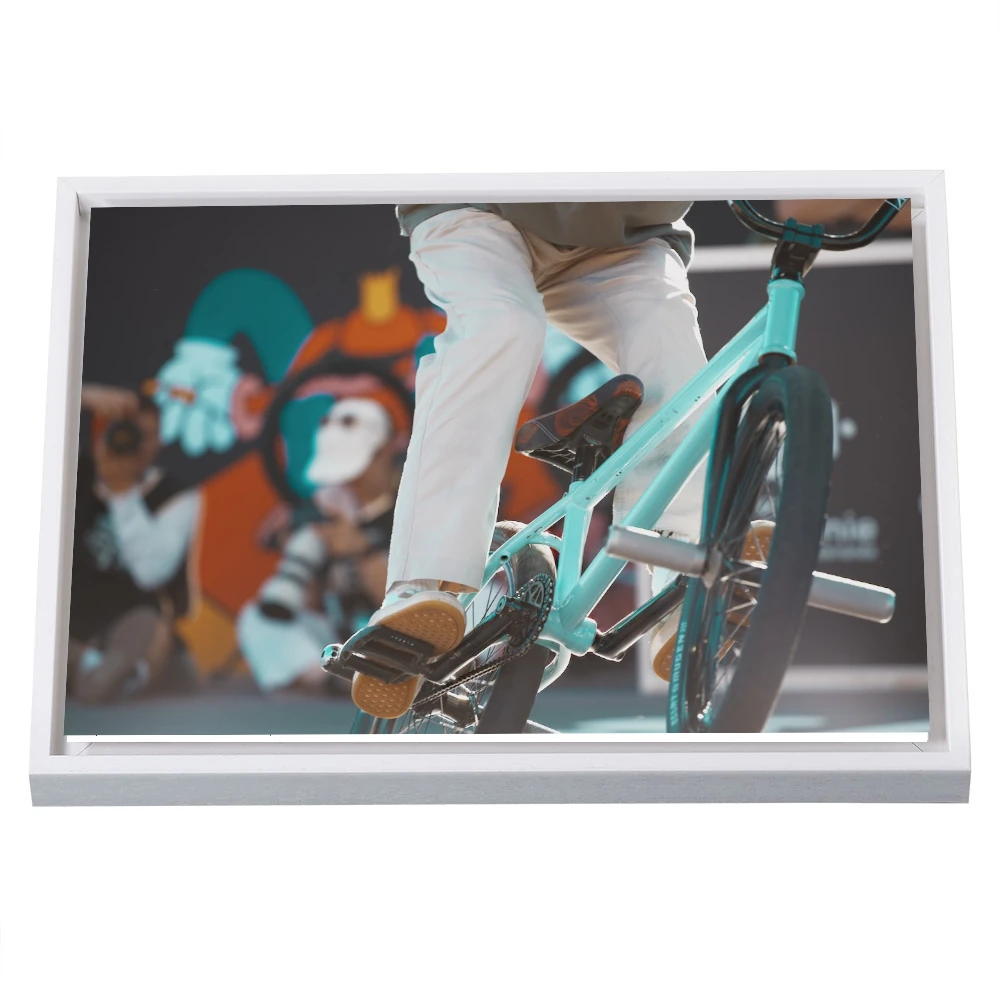 Une décoration murale haut de gamme qui transmet l’énergie et la grâce du BMX flatland, idéale pour enrichir un intérieur raffiné ou un espace d’exposition.