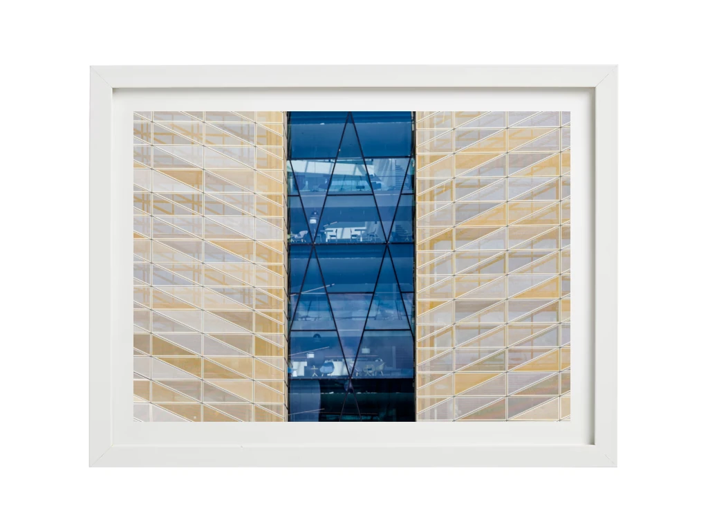 Tirage Fine Art en édition limitée. Une immersion graphique au cœur des Docklands de Dublin. En s’attardant sur un détail de la façade plutôt que sur l’ensemble du bâtiment, cette photographie joue sur l’opposition saisissante des couleurs et des textures.