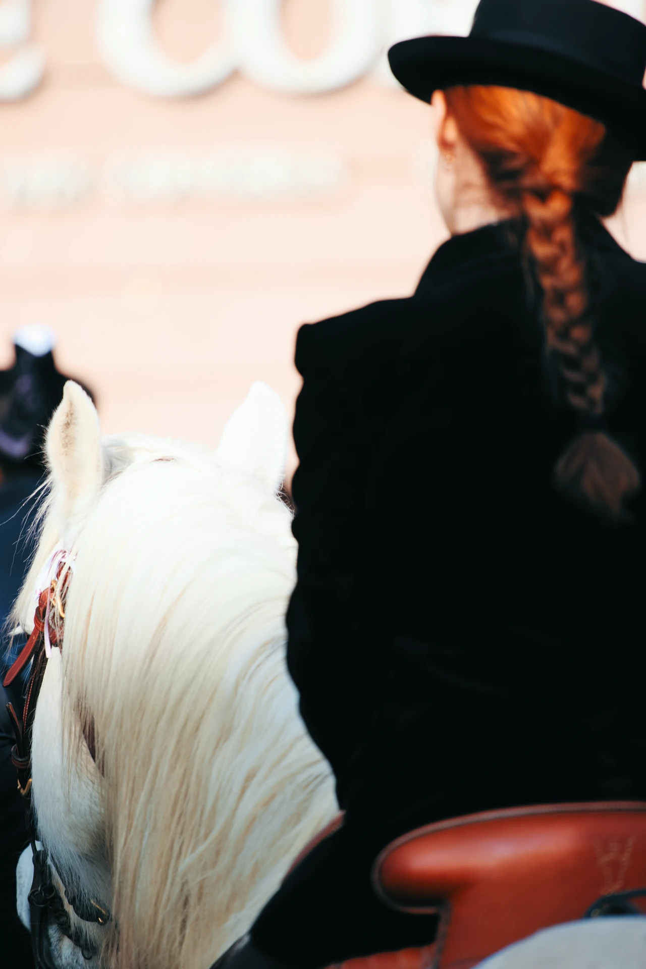 Le cadrage choisi privilégie l'intimité et le détail. Ma vision s'est portée sur le contraste saisissant entre le velours noir profond de la veste, la chevelure rousse soigneusement tressée et la blancheur immaculée du cheval camarguais. En perpétuant les traditions équestres de sa région avec passion, cette cavalière illustre la transmission d'un savoir-faire ancestral. Le chapeau de gardiane, porté avec noblesse, couronne cette silhouette qui semble traverser le temps.